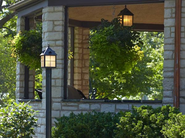 One tip to consider is to select lighting fixtures that echo the roof-line of the house. If your home has a steeply pitched roof, choose a post light that features a similar design. Coordinating outdoor lighting with your home’s architectural style unifies the overall beauty and boosts your home’s curb appeal.
