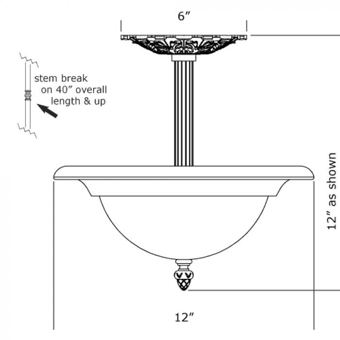 12″ Diam Ornate Single Stem Alabaster Pendant