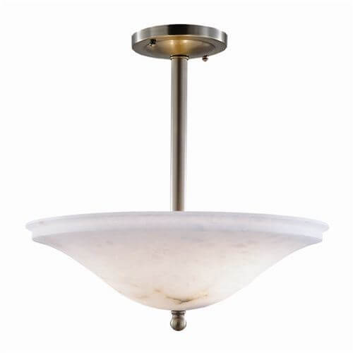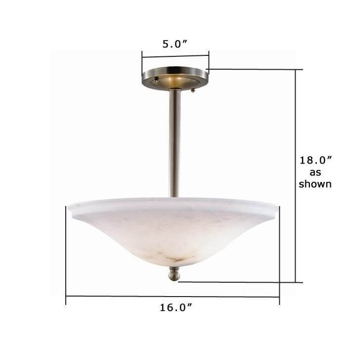 The Navarra Alabaster Pendant 16″ Diam, Single-Stem features the organic curve and articulated edge of the Navarra Alabaster Bowl Family of light fixtures. Our customers have chosen this alabaster light for use with a wide range of architectural styles, for use in spaces brand new to centuries old. This alabaster pendant light gives a tremendous quality of soft ambient light through the translucent stone. Choose your Overall Length and from thirteen high quality Metal Finishes to complete the look that works best in your interior.