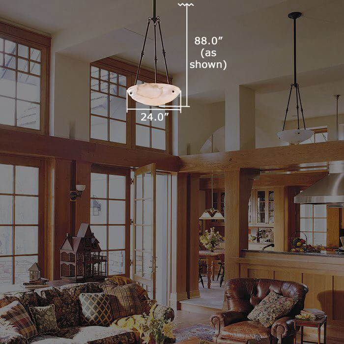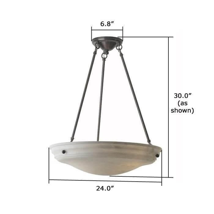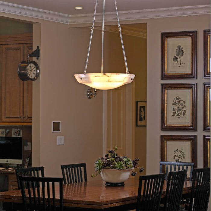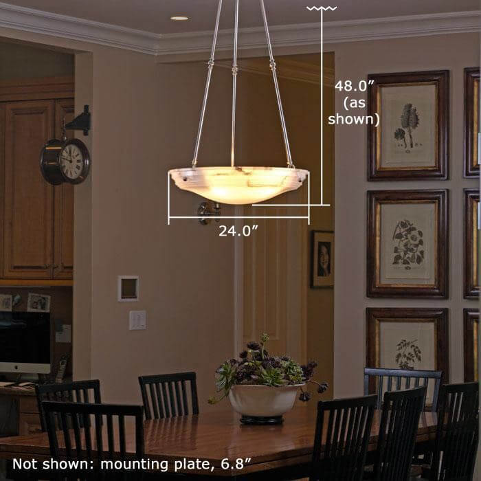 The Hampton 24 inch Diameter Multi-Stem Alabaster Pendant is a classic light fixture with a robust, carved contoured profile. Made with genuine alabaster stone and solid brass fittings, the understated elegance of the pendant makes it work with a variety of interior design styles including Transitional, Art Deco, Traditional, Modern, and Contemporary. This medium scale alabaster light is a good fit for dining rooms, living rooms, libraries, studies, dens, and home offices. Order the made in Milwaukee alabaster fixture in the best Overall Length for your ceiling height. Further customize your alabaster pendant by choosing one of our high quality metal finish options for the fittings and smooth finials. For recommendations on Overall Length, please contact our sales team for helpful lighting design insight and tips.