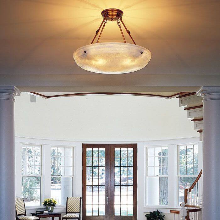 No two pieces of alabaster stone are identical. Each alabaster light has unique veining, texture, tint and color. Your alabaster light will differ from the one pictured.