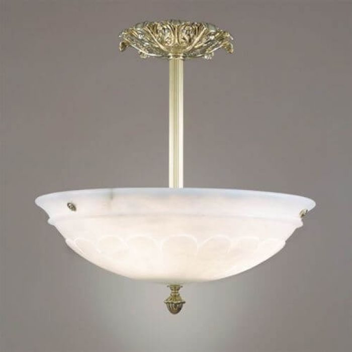 19″ Diam Ornate Single-Stem Alabaster Pendant