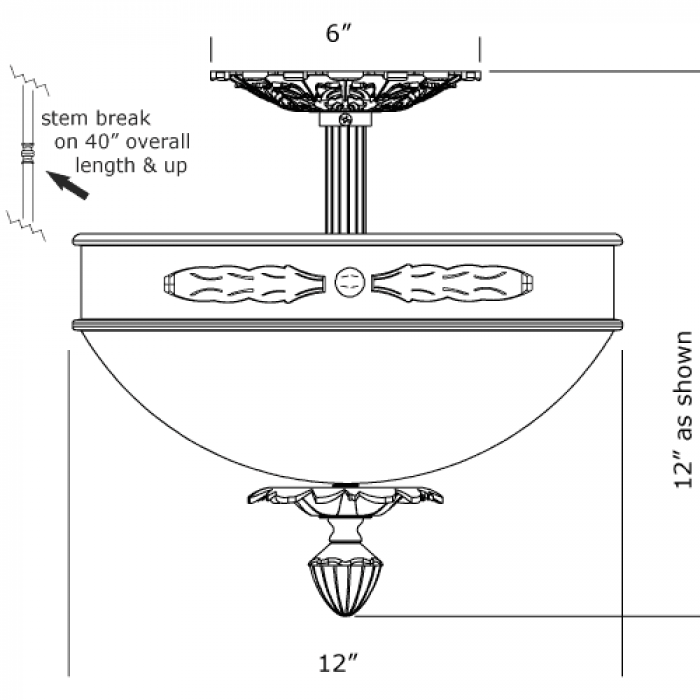 12″ Diam Ornate Single Stem Alabaster Pendant
