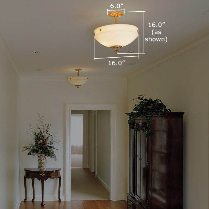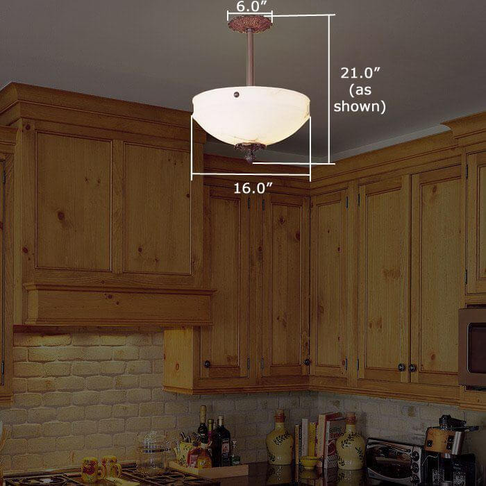 16″ Diam Ornate Single-Stem Alabaster Pendant