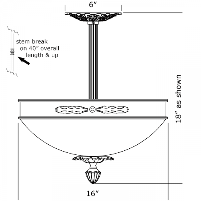 16″ Diam Ornate Single Stem Alabaster Pendant