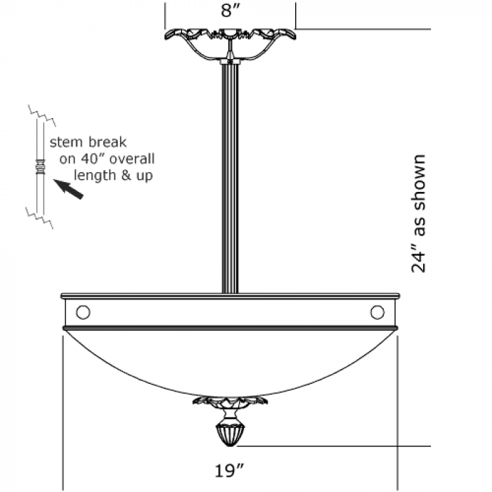 19″ Diam Ornate Single Stem Alabaster Pendant