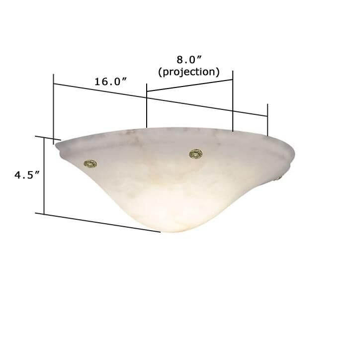 Carved from authentic alabaster stone, our larger scale Navarra Sconce 16 inch Wide Alabaster Wall Sconce with Ornate Rosettes is a popular lighting choice for larger rooms in need of ambient illumination. Over the years, our customers have installed the alabaster wall sconces in dining rooms, living rooms, parlors, libraries, dens, home offices, wide stairwells, and master bedrooms. The simple, classic design works with a variety of interior styles including: Transitional, Traditional, and Tudor Revival. Choose from 13 high quality metal finish options for the Ornate Rosettes.