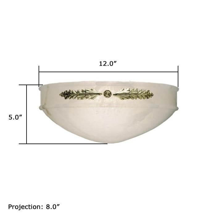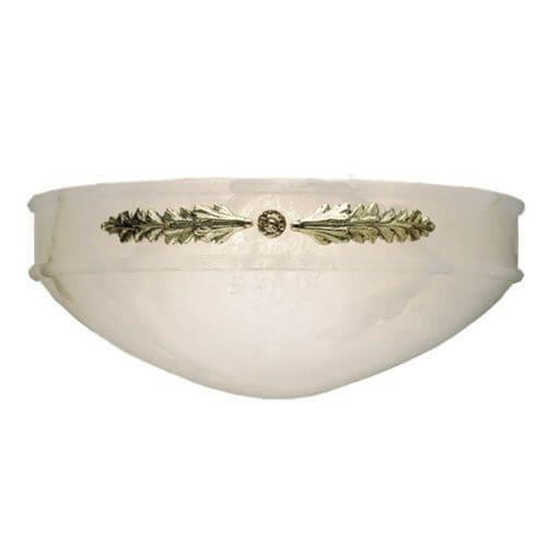The Laurel Leaf 16 inch Wide Alabaster Wall Sconce is a medium scale genuine stone wall light. The pleasing proportions of the authentic alabaster stone combined with the decorative possibilities of the solid brass Laurel Leaf Embellishments along the rim make this eye-catching sconce a versatile and striking choice for interior illumination. Popular in powder rooms, hallways, foyers, stairwells, and inglenooks, the Laurel Leaf Wall Sconce works in a variety of interior design styles. Over the years, our customers have ordered this light for Contemporary, Modern, Transitional, Traditional, Arts & Crafts, Mission, Tudor Revival, and Art Deco homes. Tailor this alabaster light to your interior by choosing from 13 high quality metal finishes. For recommendations on Metal Finishes, please contact our sales team for helpful lighting design insight and tips.
