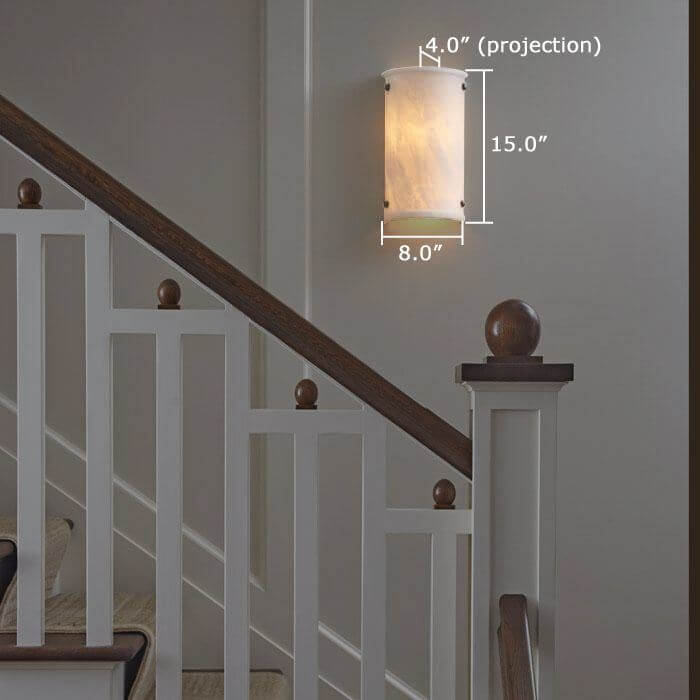 Carved from real alabaster stone, this Tall Volterra Alabaster wall sconce works well for spacious residential interiors or for commercial projects where ADA compliant lighting is a must.