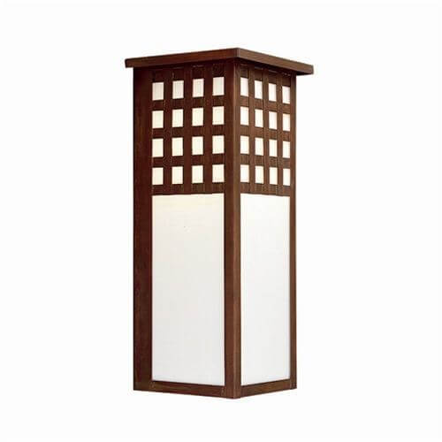 The dramatic and beautifully proportioned Castle Gate Lantern shows the influence of early English medieval architecture on Arts & Crafts design. This exterior fixture works marvelously well on Tudor Revival and Arts & Crafts homes. Complement the notable architectural details of your historic building by choosing either Lancet or Sawbridge Overlay. Over the years, our customers have ordered the handcrafted wall mounted sconce to complement indoor Prairie Style décor. This made in Milwaukee indoor or outdoor lantern sconce is available in every scale from small 5 inch wide by 11 inch tall to massive 12 inch wide by 28 inches tall. If you need assistance determining the best sized wall mounted lanterns for your unique project, please contact our sales team for expert lighting advice.