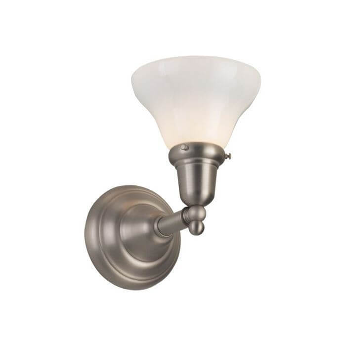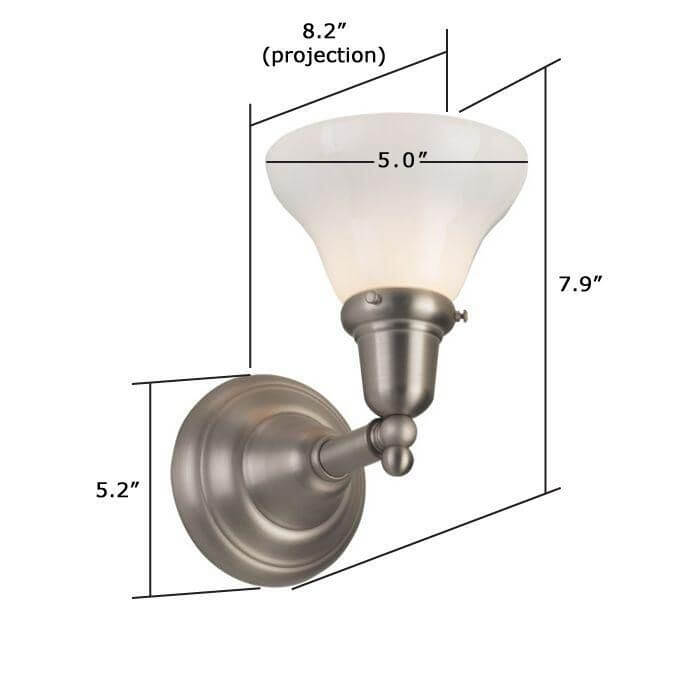 Our Shoreland One Light Straight Arm Sconce with 2-1/4 inch shade holder recalls light fixtures from an earlier era. The design of the made in Milwaukee wall sconce is inspired by an antique 1905 original. Straightforward, beautifully proportioned components include a deep round mounting plate, straight arm, and ball finial. This wall sconce may be mounted with glass facing up or down and works well in a variety of interior styles including Cottage, Rustic, Eclectic, and American Foursquare. One of our most popular wall sconces due to design, quality, and value, the hand crafted Shoreland One Light Straight Arm Sconce is a great choice for bathrooms, living rooms, hallways, stairwells, and over bedside tables. Tailor the high quality wall light to your interior by choosing from 13 high quality metal finishes. For recommendations of Metal Finishes or to obtain samples, please contact our sales team for helpful lighting design insight and tips.