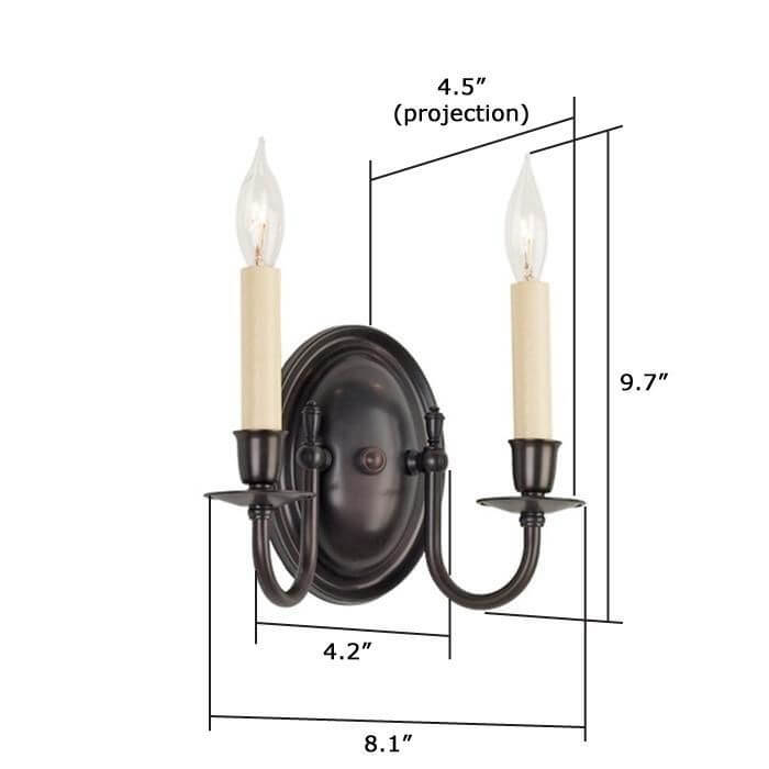 The Glendale Two Light Curved Arm Sconce with electric candles is a traditionally styled lighting fixture. A great choice in pairs for flanking a fireplace or lighting a window seat, or anywhere traditional sconces are needed.