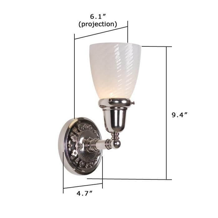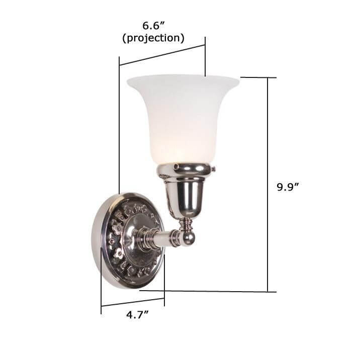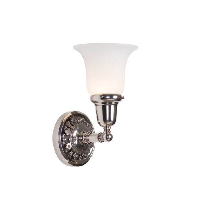 The Argine Sconce wall light fixture provides a classic design for your bathroom or bedroom lighting. These light fixtures feature a cast back plate and notched edge medallion center.