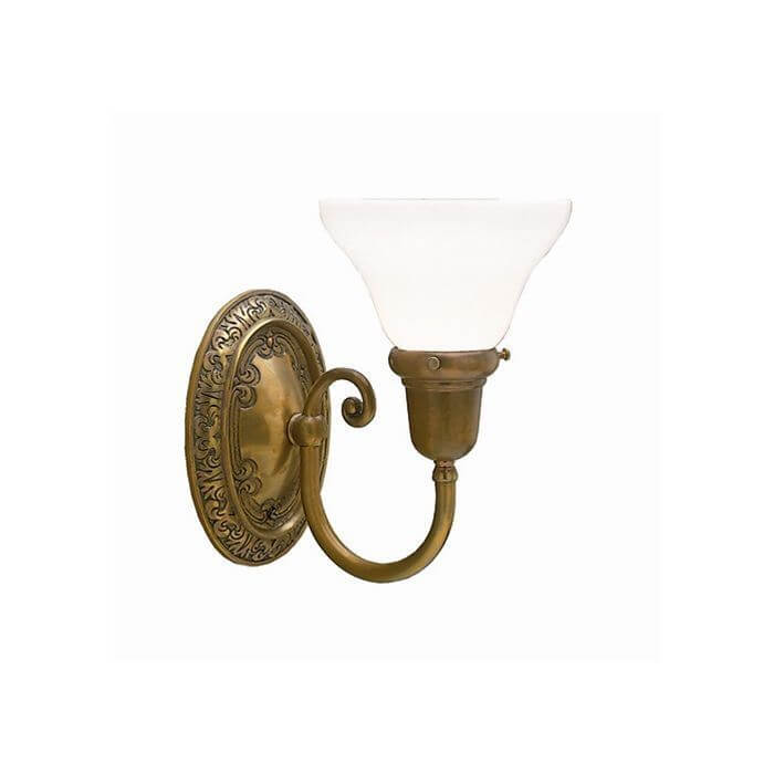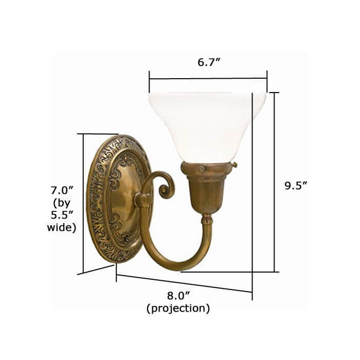 Our handcrafted Cotswold Manor One Light Curved Arm Sconce with 2-1/4 inch shade holder is a larger scale traditional style wall sconce inspired by an early 1900‘s antique original fixture. The robust cast solid brass backplate is encircled by a finely detailed abstract leaf border and supports an elegant curved arm. The made in Milwaukee sconce is a popular light for traditional style entryways, living rooms, dining rooms, libraries, studies, and stairwells and may be mounted with glass up or down. Over the years, our customers have ordered the Cotswold Manor One Light Curved Arm Sconce for their period homes: English Tudor, Arts & Crafts, French Provincial, and Shingle Style. The high quality sconce is available in any of our 13 metal finishes and with a variety of glass shade options from our exclusive collection. For recommendations of metal finishes and shades, or to obtain samples, please contact our sales team for helpful lighting design insight and tips.