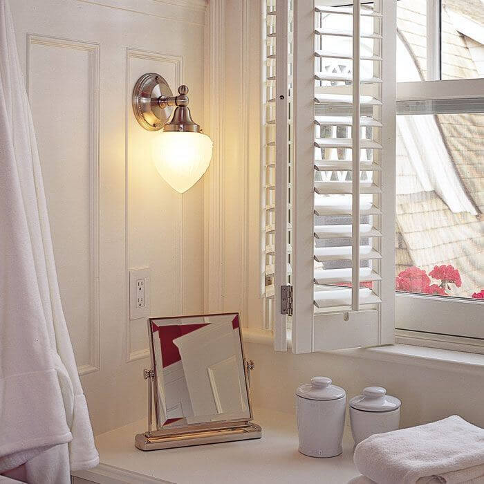 Timeless style and classic elegance are seamlessly united in our handcrafted Carlton One Light Straight Arm Sconce with 3-1/4 inch shade holder. The 3-1/4 inch shade holder accommodates the larger fitter found on most globes. The solid brass cast mounting plate is ringed with handsome beading and is based on an antique light fixture found in a 1905 lakefront mansion on Milwaukee‘s historic East Side. The made in Milwaukee wall light is popular in bathrooms, bedrooms, vestibules, hallways, stairways, and dining rooms. For assistance choosing the best metal finish and glass globe for your Carlton Wall Sconce, please contact our sales team for helpful lighting design tips.