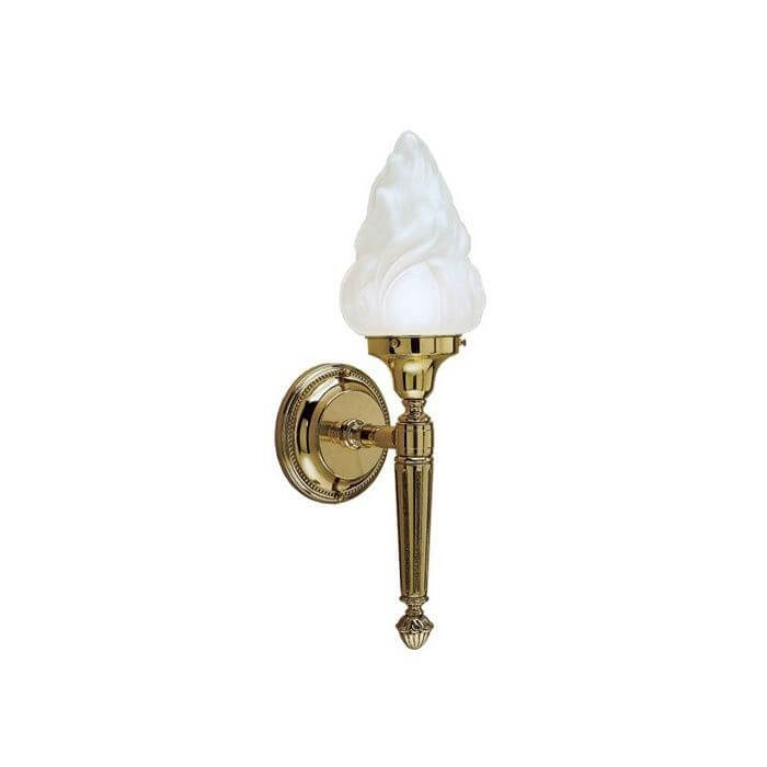 The Carlton One Light Torch Sconce with 3-1/4″ shade holder features a cast beaded backplate with a tapered cast brass reeded spear. These Neoclassic wall sconces have a larger shade holder and are designed to be used in spacious interiors.