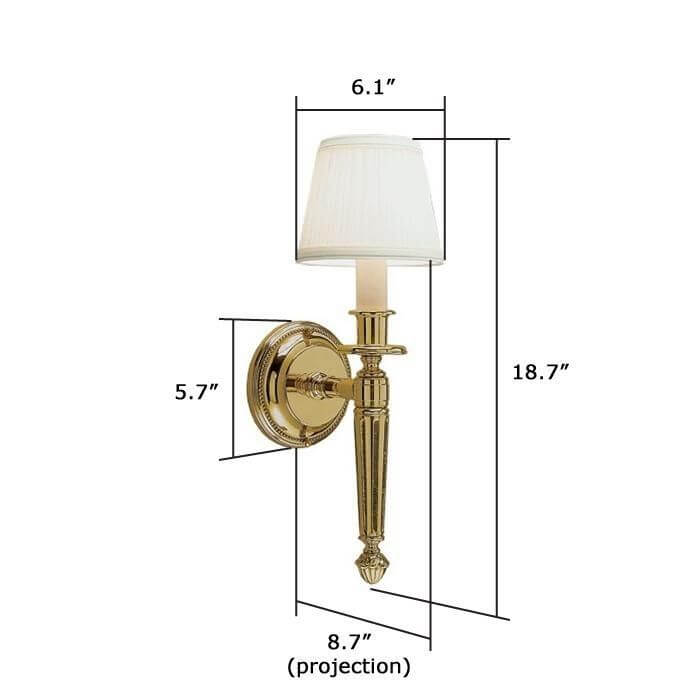 The Carlton One Light Torch Sconce with electric candle features a cast beaded backplate with a tapered cast brass reeded spear. Theis Neoclassic sconce is designed to be used in spacious interiors.