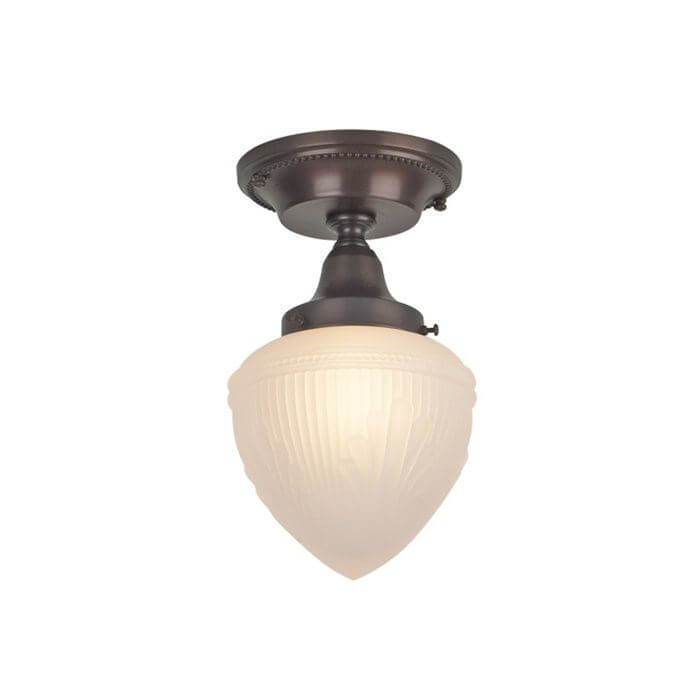The Carlton One Light Semi Flush Ceiling Fixture with 3-1/4″ shade holder is a classic light fixture with beaded edging on the cast brass canopy. Available in any of our thirteen high quality metal finishes and with a wide variety of globes, this traditional ceiling light fixture is popular for use in powder rooms, pantries, mudrooms, and hallways.