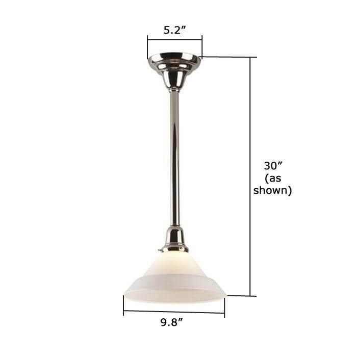 The Shoreland One Light Pendant with 2-1/4 inch shade holder is the paradigm of clean, simple design. Based on a 1905 original antique ceiling light, our handcrafted made in Milwaukee pendant can be ordered in any Overall Length based on your ceiling height. Use this light fixture over kitchen islands and counters, in home bars and pubs, in recreation rooms, and in any area where straightforward task lighting is desired. Our most popular pendant due to affordability, quality, and style, the Shoreland One Light Pendant can be tailored to suit your room by choosing from our 13 high quality metal finishes and array of shade options. For assistance choosing the best metal finish, Overall length, and shade for your ceiling pendant; please contact our sales team for helpful lighting design ideas and tips.