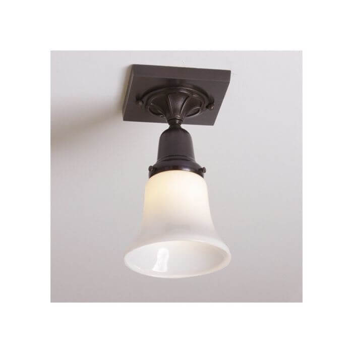 Inspired by William Morris, a founder of the English Arts & Crafts movement; our Morris One Light Flush Ceiling Fixture with 2-1/4 inch shade holder works well in traditional and contemporary rustic interiors. Clean, durable castings evoke one of the hallmarks of the movement: simplicity of organic form without superfluous decoration. The heavy cast mounting plate on the ceiling light features a robust stylized floral motif. Elegant yet substantial, the Morris ceiling light is a popular choice for master bathrooms, powder rooms, hallways, vestibules, foyers, and stairwells. Shown in rich Architectural Bronze metal finish with A151 Opal Gloss Trumpet Glass Shades, the Morris One Light Ceiling Fixture can be tailored to suit your interior by choosing from our 13 high quality metal finish options. For assistance choosing the best metal finish for your ceiling light; please contact our sales team for helpful lighting design ideas and tips.