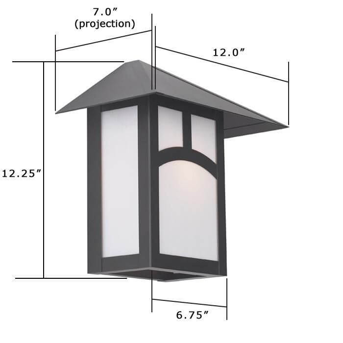 Our handcrafted Pine Lake Lantern 12 inch Wide Flush Exterior Wall Light shows its influence of Japanese design in its clean lines and wide sloping roof. This high quality outdoor light is beautiful on Bungalow, Prairie Style, and Arts & Crafts period homes and buildings. For a contemporary style wall mounted lantern, choose the No Overlay option to achieve a clean, modern design. Available in your choice of 6 high quality metal finishes, 9 art glass panel options and two decorative Overlays or No Overlay, the made in Milwaukee Pine Lake Lantern can be tailored to suit your exterior perfectly. If you need assistance determining the best choice for your outdoor lighting, please contact our sales team for expert lighting advice.