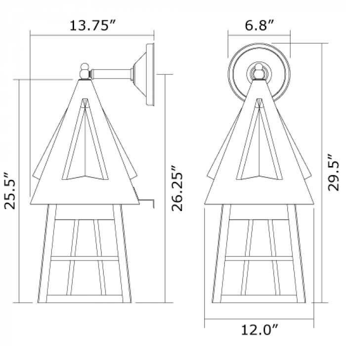 Lantern 12″ Wide Straight Arm Exterior Wall Light