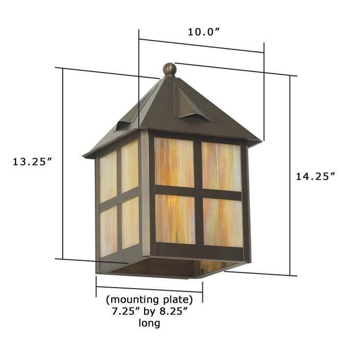 The design of our handcrafted Cottage Lantern was inspired by Shingle Style homes on the East Coast, but over the years, customers have also ordered the Cottage Lantern for English Tudor and American Foursquare architecture as well as beach homes and conch houses. The made in Milwaukee Cottage Lantern features hand bent roof vents and your choice of decorative Overlay including T-Bar or Windowpane as shown above. Choose from 6 high quality outdoor metal finishes and 9 creative art glass panel options to tailor our Cottage Lantern to perfectly fit your architectural style.