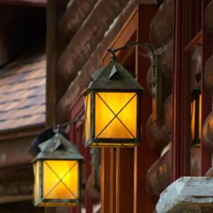 Lantern 6″ Wide Curved Arm Exterior Wall Light