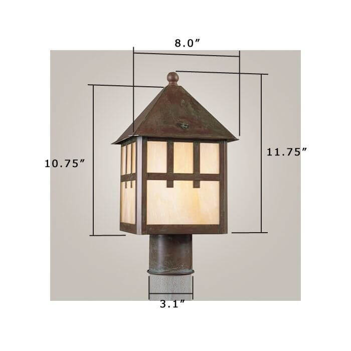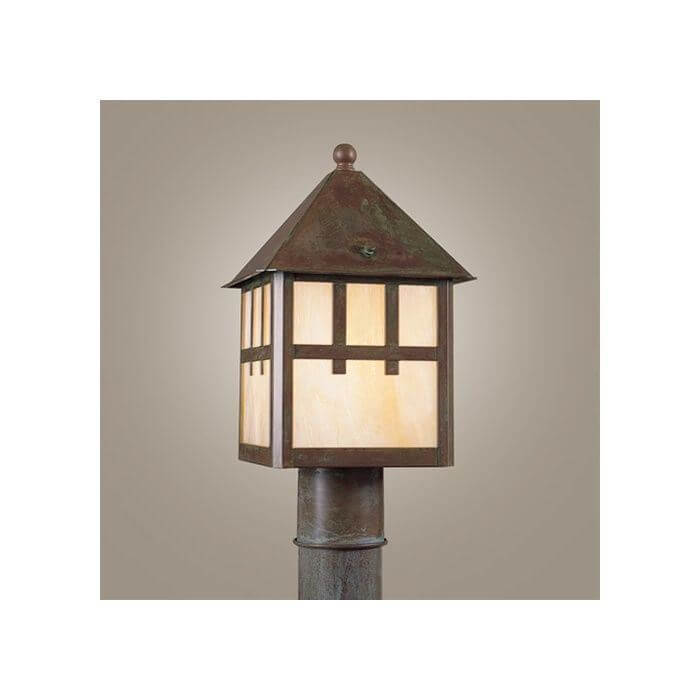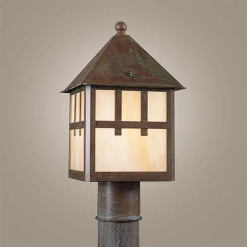 We designed the Bungalow Lantern exterior light to meet the needs of homeowners across the country seeking an inspired outdoor lighting choice for their Bungalow home. This American classic is famous for its affordability, durability and versatility of design elements. For a traditional Arts & Crafts exterior lighting look, use the Craftsman or Foursquare Overlay options. This handcrafted outdoor lantern looks perfect with Bungalow, American Craftsman, and Shingle Style architecture on seaside cottages, beach houses, log homes, historic carriage houses, and rustic cabins. The Horizontal Bar overlay option gives a crisp modern exterior lighting appearance and is popular with owners of contemporary and modern homes. Choose the Bungalow Lantern 8 inch Wide Exterior Post Light for front yards, to mark driveways, to line walkways, or as accent lights around your outdoor entertaining areas. If you need assistance determining the best metal finish choice, art glass option, or decorative overlay for your Bungalow Lantern, please contact our sales team for expert lighting advice.