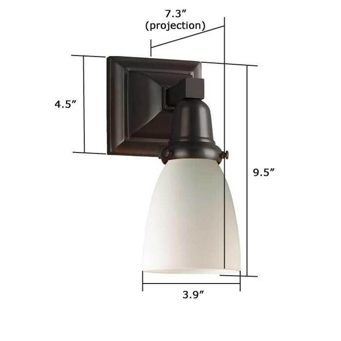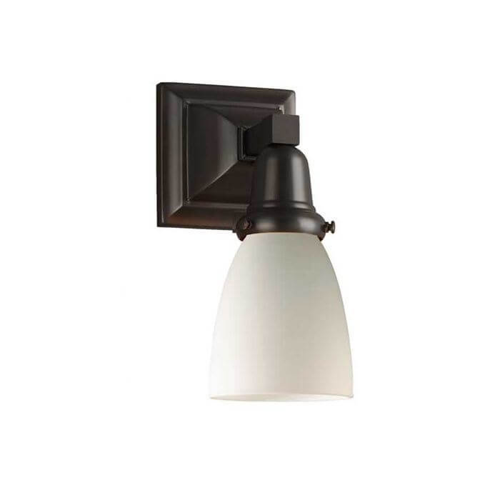 The Glen Ellyn One Light Straight Arm Sconce with 2-1/4 inch shade holder offers robust construction and timeless design. The handcrafted wall mounted sconce has square components and a round glass shade holder which provides opportunity to choose from our exclusive collection of glass shades with round fitters. Depending on your interior lighting needs, the versatile wall light can be mounted with glass facing up or glass facing down. This classic sconce is suitable for a variety of styles including Arts & Crafts, Amercian Craftsman/Bungalow, Mission Style, Rustic, and Cottage Style. Shown above in rich Architectural Bronze finish with a clean White Opal Satine Chablis Shade, the Glen Ellyn One Light Straight Arm Sconce is available in 13 high quality metal finish choices. For assistance choosing the best metal finish and glass shade for your wall sconce, please contact our sales team for helpful lighting design ideas and tips.