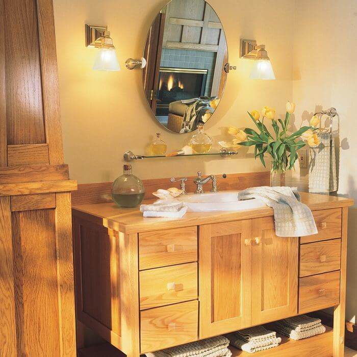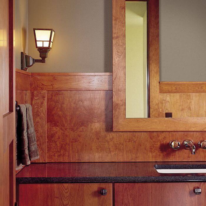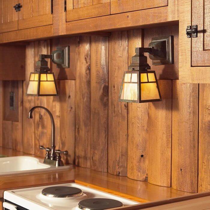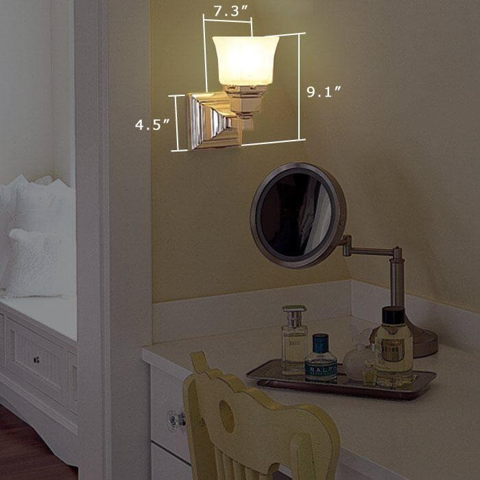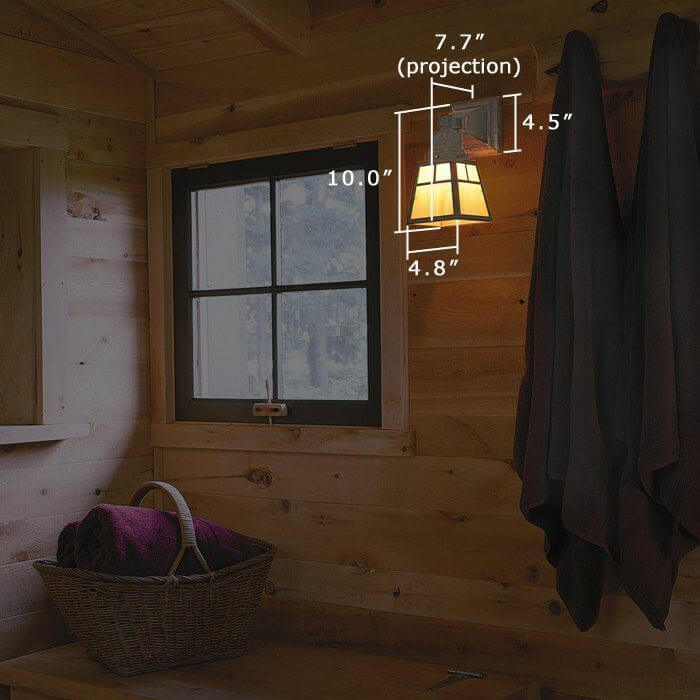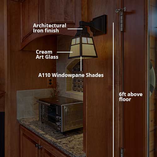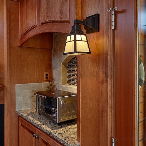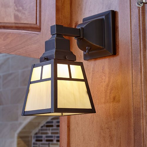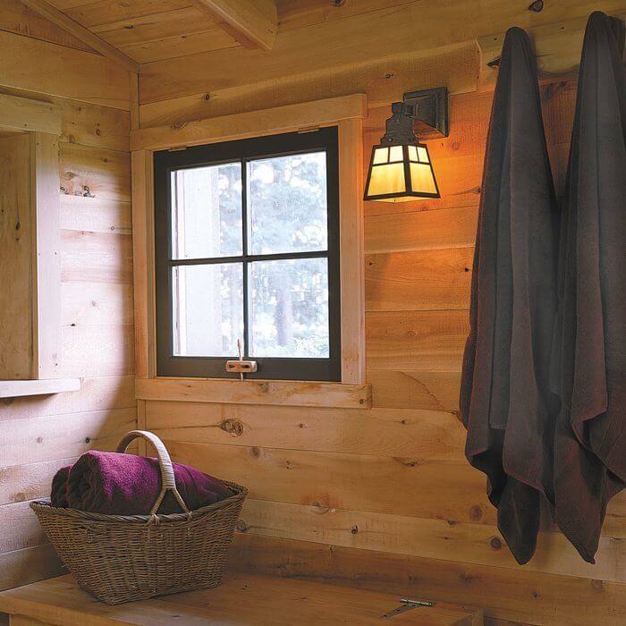 Our Oak Park One Light Straight Arm Sconce with 2-1/4″ shade holder is adaptable to many different environments including this clean and simple circa 1920’s white tiled bathroom. This interior lighting fixture offers timeless design, functional illumination, and solid construction.