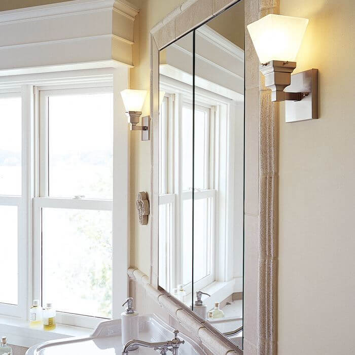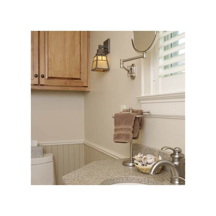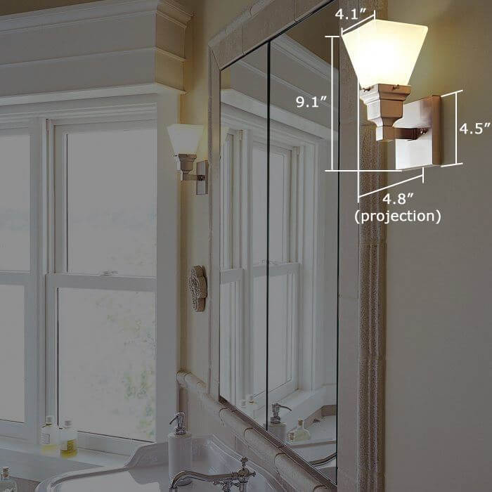 Long appreciated as a clean and bright lighting solution, the Spring Green One Light Straight Arm Sconces with 2-1/4 inch shade holder is a streamlined interior wall sconce with a smooth backplate and all square components. The Spring Green One Light projects just 4.5 inches from the wall, making it a good fit for rooms where space is limited. This wall sconce is popular for bathrooms, powder rooms, hallways, reading nooks, and stairways. Our made in Milwaukee Spring Green One Light Straight Arm Sconces with 2-1/4 inch shade holders may be mounted with glass facing up or down and are available in any of our 13 high quality interior metal finish options.