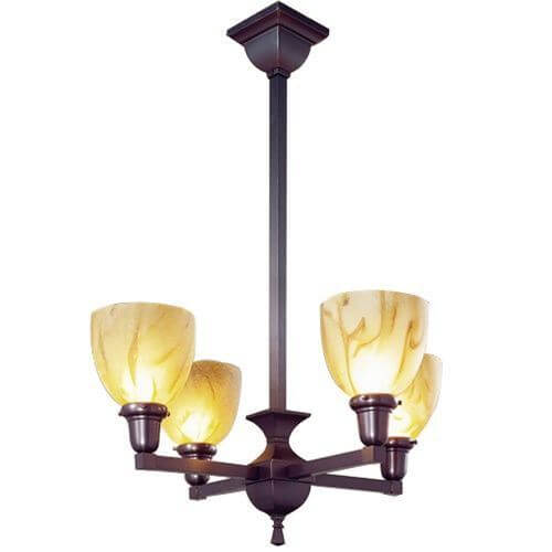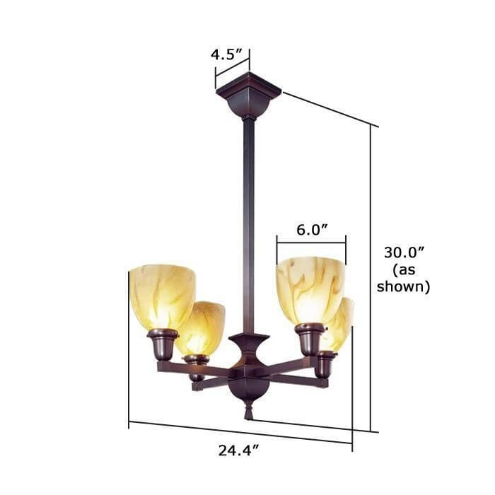 The Glen Ellyn Four Light Chandelier with 2-1/4 inch shade holders facing up offers timeless design and robust construction. The handcrafted chandelier has a combination of square components and round shade holders which hold a wide array of glass shades from our exclusive collection. This traditional chandelier is suitable for a variety of styles including Arts & Crafts, American Craftsman/Bungalow, Mission Style, Rustic, and Cottage Style. This four light chandelier is popular for breakfast nooks, home offices, dens, and over smaller kitchen and dining room tables. Shown above in rich Architectural Bronze metal finish, the Glen Ellyn Four Light Chandelier is available in 13 high quality metal finish choices. The made in Milwaukee light is made-to-order in the best Overall Length for your ceiling height. For assistance choosing the best metal finish, glass shade, and Overall Length for your chandelier; please contact our sales team for helpful lighting design ideas and tips.