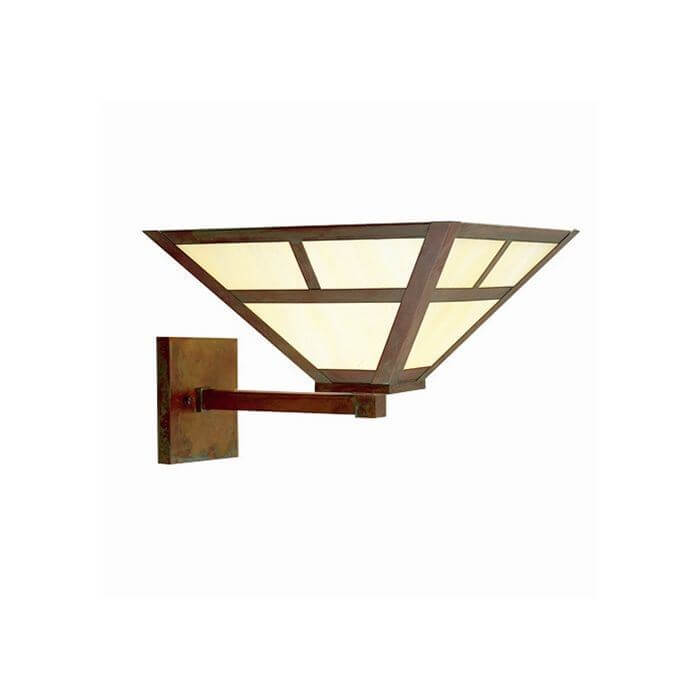 Our handcrafted Mission Lantern 12 inch Wide Straight Arm Sconce is a larger scale fixture that provides upward or downward illumination. Generally, our customers mount the Mission Lantern Sconces high and facing up to add accent lighting and to highlight architecture. Downward mounted sconces provide more direct lighting to console tables; bedside tables and nightstands; and dining room built-ins. Mission Sconces are popular for foyers, entryways, hallways, stairways, bedrooms, dining rooms, and over living room fireplaces. For larger rooms with tall ceilings, order our Mission Lantern 15 inch Wide Straight Arm Sconce. Choose from 13 high quality metal finishes, 9 art glass panel options, and 6 decorative Overlays to tailor your Mission Wall Sconces to suit your unique interior. Contact our sales team if you need assistance with your indoor lighting choices. Optional compact fluorescent lamping available.