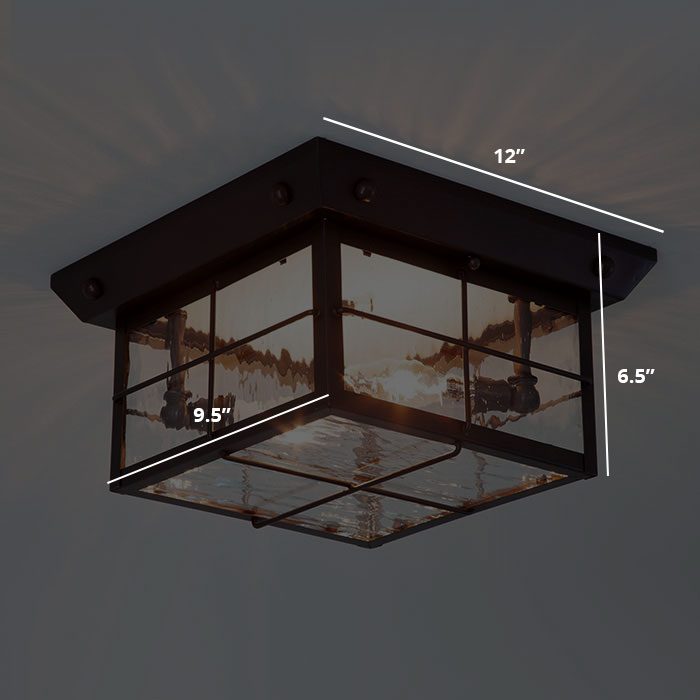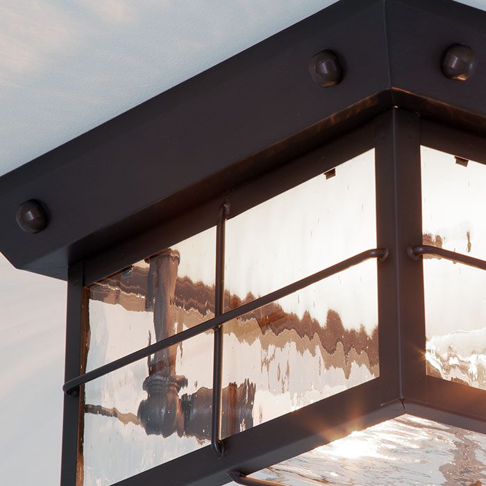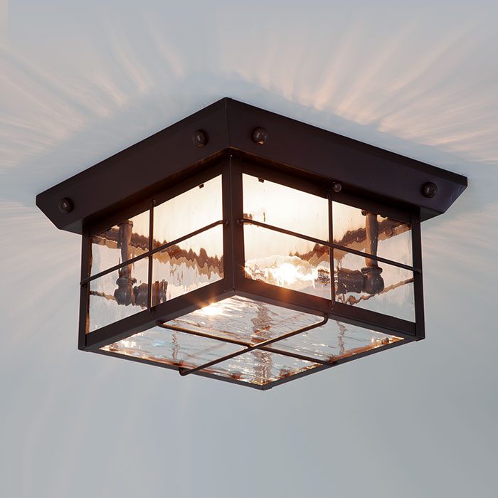 This custom ceiling fixture, with sockets (2) each rated for up to 75 watts max, provides ample exterior porch lighting.