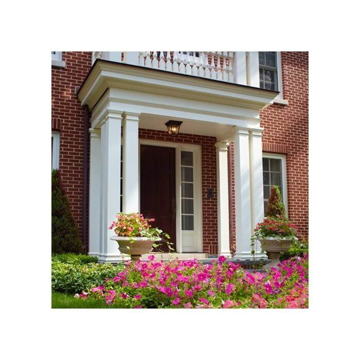 The owners of the impressive red brick Georgian Revival home shown above chose our handcrafted London Lantern 8 inch Wide Flush Exterior Ceiling Light to illuminate their elegant front portico. The London Lantern 8 inch Wide Flush Exterior Ceiling Light is the right height for the bottom of the fixture to fall just above the painted molding around the front door and sidelites. Our sophisticated flush ceiling mount outdoor fixture is elegant and airy but substantially constructed and a favorite of architects and builders where stately form and significant lighting functionality is a must. Inspired by the glass enclosed conservatories of 19th Century British country estates, this traditional exterior lantern works well with a wide variety of historic, formal architectural styles including Queen Anne Victorian, English Tudor, Antebellum Style, Greek Revival, Georgian Revival, and Italianate. The handcrafted made in Milwaukee ceiling lantern is a superb choice on porches, verandas, at front entrances, on elegant garages, and for historic coach houses, boat houses, gazebos, carriage barns, and other outbuildings. Coordinate the flush ceiling mount London Lantern with wall mount, post mount, pier mount, and path lights from our exclusive family of outdoor London Lanterns. If you need help determining the best scale, mounting option, metal finish or art glass panel choice, please contact our sales team for helpful lighting design suggestions.