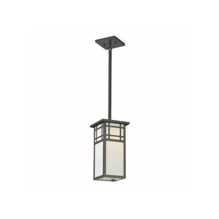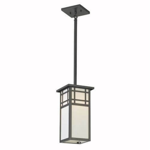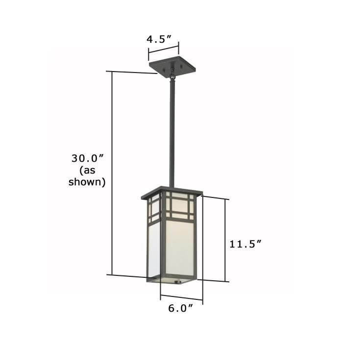 The Studio Lantern 6″ Wide Solid Stem Exterior Pendant Light is a popular outdoor light choice where clean designs and classic proportions are a must. Tasteful and clean, this classic American outdoor light is influenced by Prairie Style architecture and, depending on the Overlay choice, works well with a number of architectural styles including Prairie Style, Midcentury Modern and Contemporary. The ring to ring connection between the stem and mounting plate of this outdoor pendant lantern is an engineering detail that allows movement in windy weather. The lantern frame is constructed of heavy solid brass and built in our Milwaukee, Wisconsin studio to look beautiful while enduring harsh weather. The lantern shown features our Macintosh Overlay, Architectural Bronze metal finish, and White Opal art glass panels. Whether you choose this exterior lantern to provide marvelous lighting for your front porch, pergola, outdoor grilling space, or second floor covered balcony, you can be sure to be satisfied with the fine American design and construction for years to come.