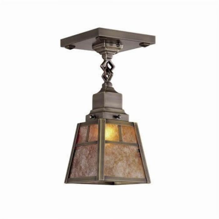 Our handcrafted Nashota One Light Chain Link Ceiling Fixture with 2-1/4 inch shade holder is a good choice for smaller spaces that could benefit from refined Arts & Crafts Style. The made in Milwaukee light fixture is constructed of square components including a smooth mounting canopy with cast rivets. Over the years, our customers have installed this ceiling light in foyers, hallways, closets, pantries, powder rooms, mudrooms, laundry rooms, family rooms, and over kitchen sinks. Shown in warm Satin Antique Brass metal finish with an A110 Windowpane Shade with Natural Shale Mica panels, the Nashota One Light Chain Link Ceiling Fixture can be tailored to suit your interior by choosing from our 13 high quality metal finish options. For assistance choosing the best metal finish and shade option for your ceiling fixture, please contact our sales team for helpful lighting design ideas and tips.