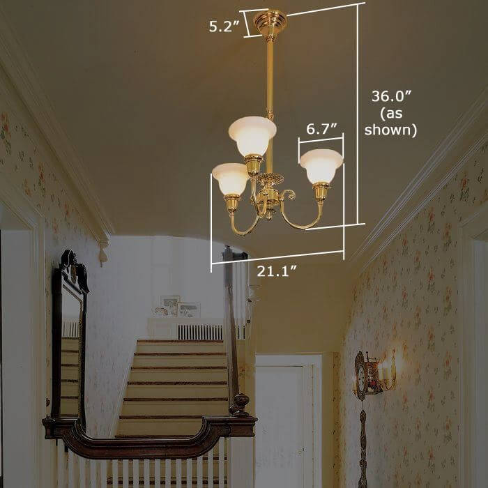 Lighting the interior of Victorian home, this Provence™ Three Light chandelier offers plenty of illumination. The versatile chandelier is shown in a traditional Polished Brass finish with A113 Bell Alabaster Cup shades, ensuring fantastic lighting for the stairwell and corridor of this 1890’s home.