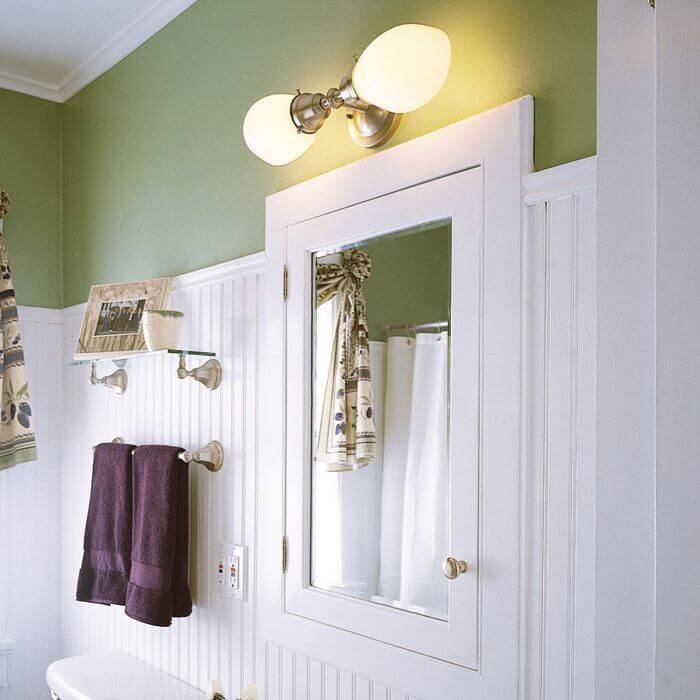 The Retro Two Light Linear Sconce with 2-1/4″ shade holders is a popular choice for bath lighting with minimal available clearance for a light fixture above mirrors. The clean styling of this sconce enhances small or large bathrooms with direct lighting. The clean, timeless styling of our Retro™ Cottage Sconce makes it a popular choice for lighting cottage style bathrooms and powder rooms. Shown above, the Cottage Style Retro wall sconce lights a quintessential Cottage Style bathroom.
