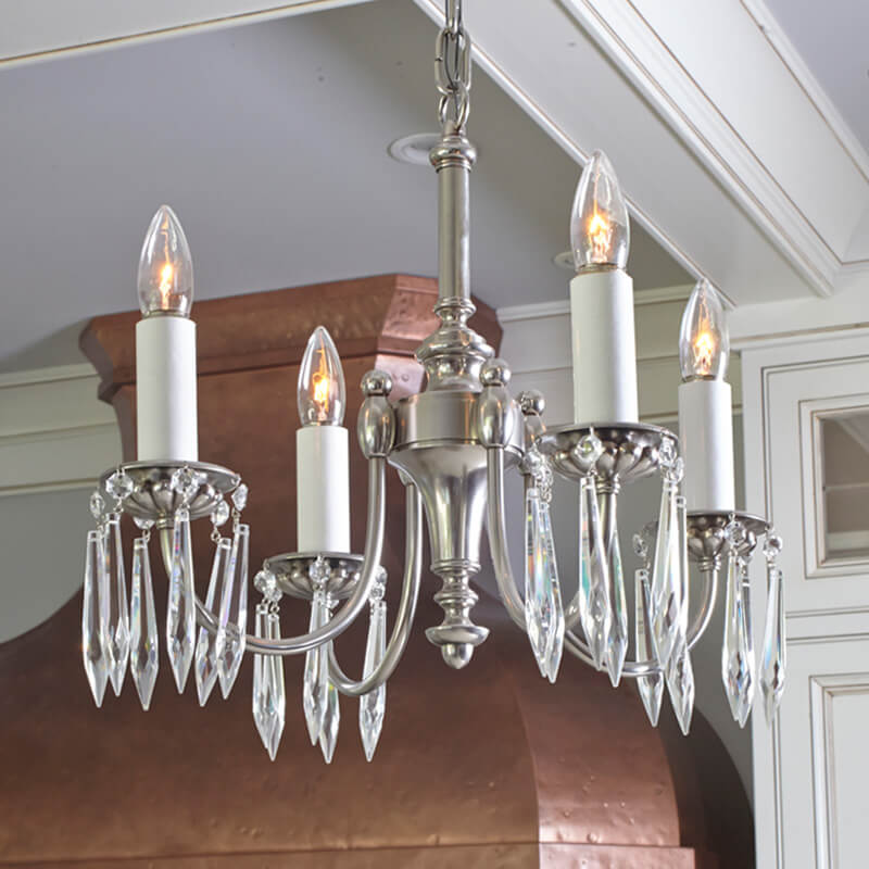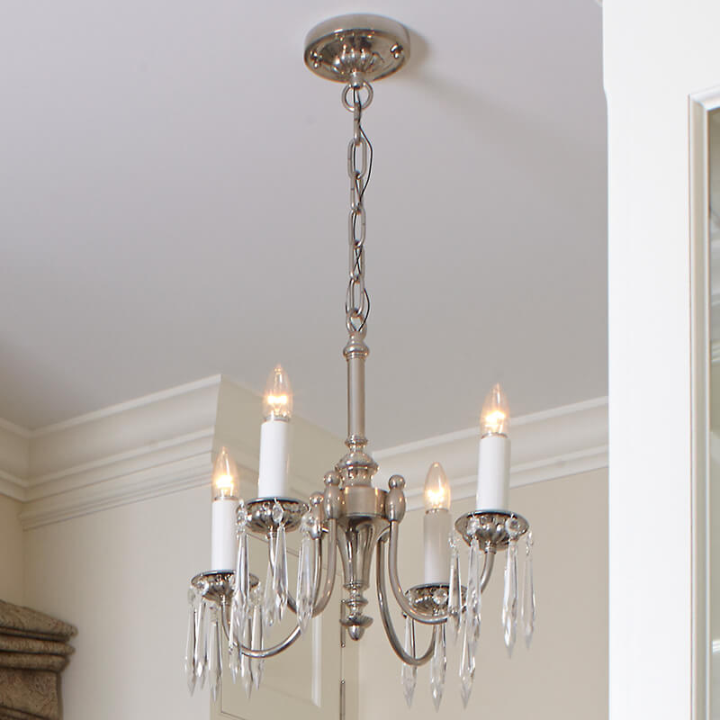 Four Light Chandelier With Electric Candles And Crystal